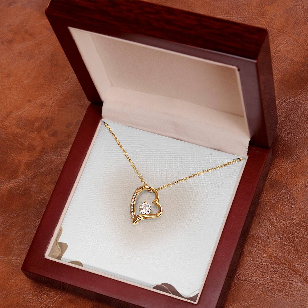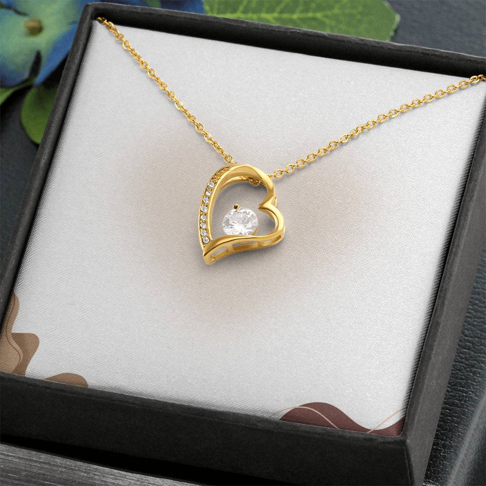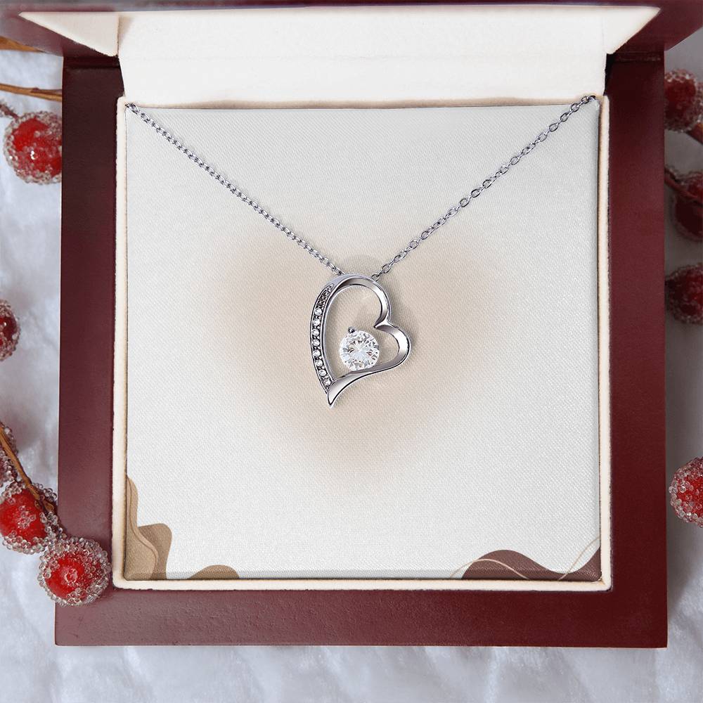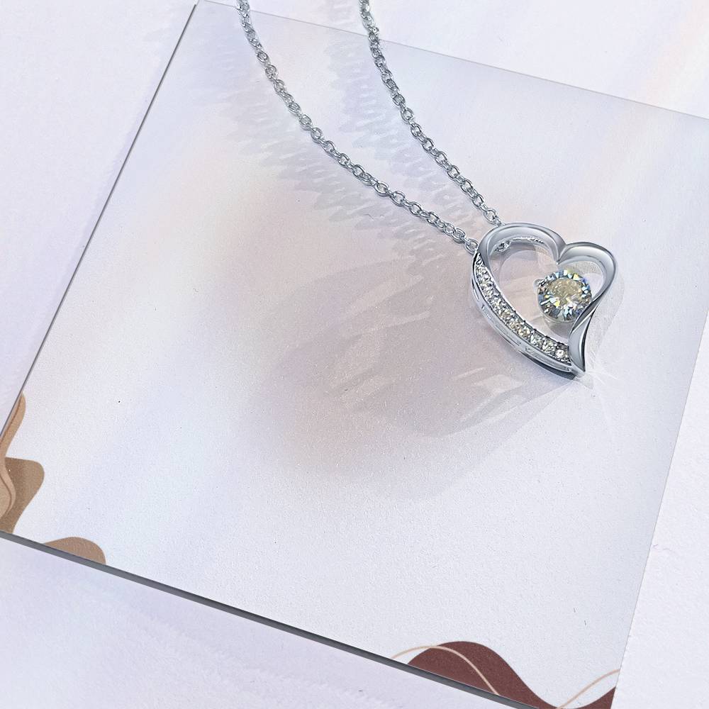 The dazzling Forever Love Necklace is sure to make her heart melt! This necklace features a stunning 6.5mm CZ crystal surrounded by a polished heart pendant embellished with smaller crystals to add extra sparkle and shine. Beautifully crafted with either a white gold or yellow gold finish, be sure to give her a classic gift she can enjoy everyday.